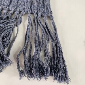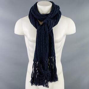 VINTAGE scarf in a navy fabric knit featuring a cable knit design and fringe.