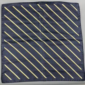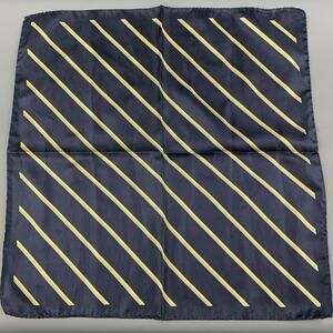 VINTAGE pocket square comes in a navy and yellow striped fabric. Made in Italy.