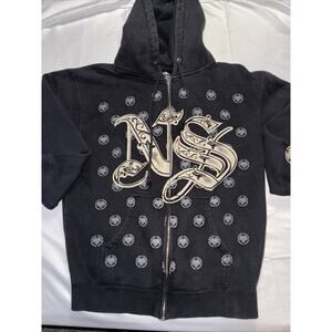 VINTAGE Never Summer Graphic Full Zip Hoodie Men Med Black Y2K