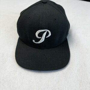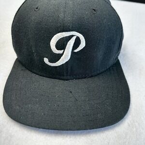 VINTAGE New Era Hat Cap Snap Back Black P Embroidered Wool Mens Medium Large 90s
