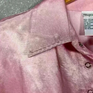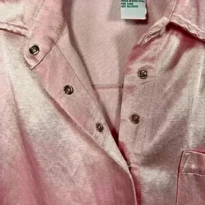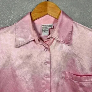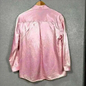 VINTAGE Newport News Pink Silky Button Up Pajama Style Oversized Blouse Women Small