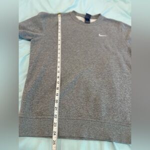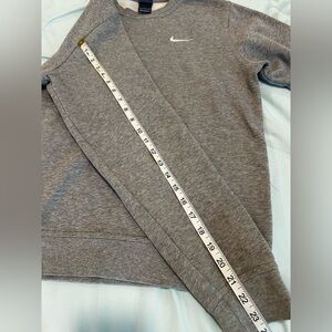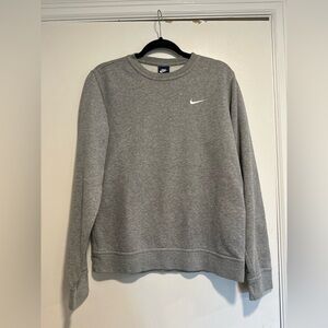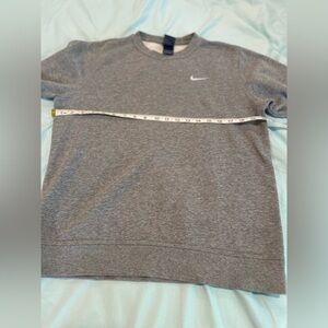 VINTAGE Nike Sweatshirt Mens S Grey Pullover Swoosh Mini Check Crew Neck Y2K. Ribbed hem and cuff. Small discoloration on the right sleeve. Noted in photo. May launder out. No rips, or defects please see pictures for measurements.