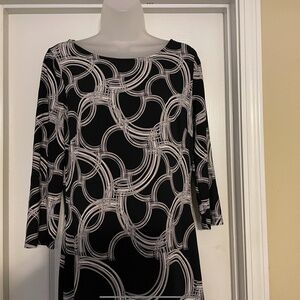 Vintage Nice West black dress with white pattern and very interesting pattern on the buttom, size 6