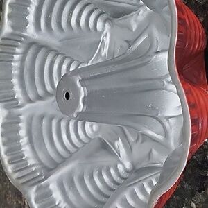 Vintage Nordic Ware Red Bundt Cake Pan Christmas Tree Evergreen Poinsettia Metal Pan