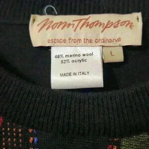 Made from a blend of cotton and acrylic materials, this sweater is both soft and durable. It's available in size L and is suitable for men of all ages. Whether you're looking for a unique addition to your wardrobe or a stylish gift for someone special, this Norm Thompson sweater is sure to impress.