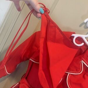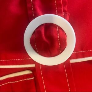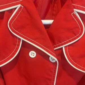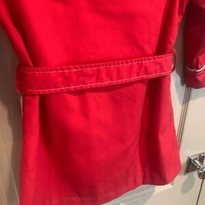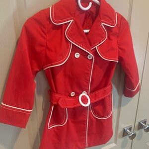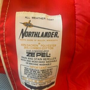 Completely vintage Northlander 1960s old weather children’s coat with matching belt and hat. Size 8/10. 65% Dacron polyester and 35% combed cotton. They absolutely do not make children’s coats like this anymore. Rain and stain repellent. Two button front enclosure. North shores of Duluth, Minnesota. Front pockets. Red with white stitching. White trim. 14.5 inches from pit to pit and 25 inches in length. This is a needle in a haystack vintage find! This coat is in perfect condition which is amazing considering it is over 60 years old. Beautifully lined inside.
