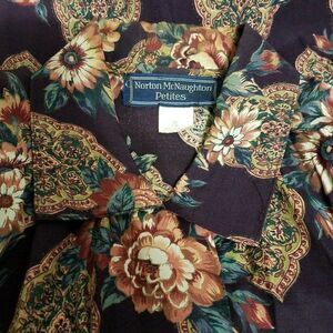 VINTAGE Norton McNaughton Pleated Skirt And Blouse With Floral Design 8P Petite