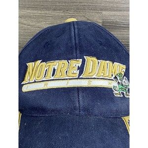 Show off your Fighting Irish pride with this vintage Notre Dame cap made by Starter. In classic blue with a snap-back adjustable strap, this hat is perfect for any Notre Dame football fan. The iconic team logo is proudly displayed on the front, making it a must-have for any collection of fan apparel and memorabilia. Whether you're heading to the game or just want to show your support around town, this Notre Dame cap is the perfect accessory for any occasion.
