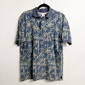 VINTAGE OP Ocean Pacific Blue Polo Bamboo Cotton Retro Medium