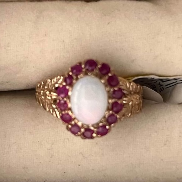 VINTAGE OPAL & RUBY HALO RING - size 7