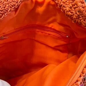 VINTAGE ORANGE STRAW BAG WITH BEAUTIFUL PINK AND YELLOW FLOWERS
