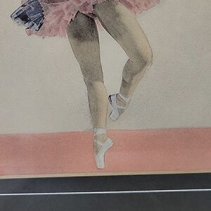 A beautiful vintage litho painting of a ballerina. The picture itself is approximately 6"x 7 1/2". Very nice painting.