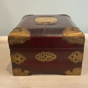 VINTAGE ORNATE LATCH WOOD BRASS JEWELRY BOX HOME DECOR