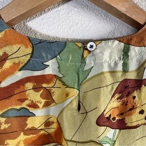 VINTAGE OSCAR DE LA RENTA Silk Fall Harvest Leaf Allover Print Short Sleeve Top