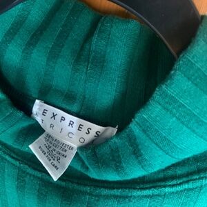 VINTAGE OVERSIZED EXPRESS TRICOT GREEN TURTLENECK SWEATER KNIT DRESS SIZE XS / 0