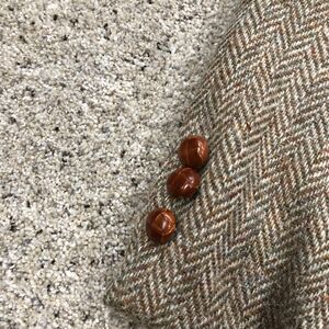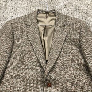 VINTAGE Oakmont Blazer Adult 44L Beige Wool Herringbone Sport Coat Suit Jacket