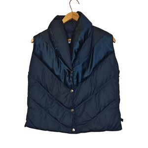 VINTAGE Obermeyer Vest Womens Large Navy Down Puffer Snap Front Ski Chevron 80s