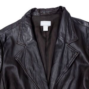 VINTAGE Old Navy 100% Genuine Leather Jacket Dad Coat Dark Brown Minimal Large
