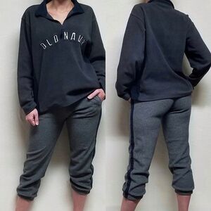 VINTAGE Old Navy Quarter-Zip Gray Striped Fleece Sweater Cropped Joggers Set Med