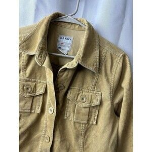 VINTAGE Old Navy Y2K Corduroy Retro Button Mid Length M Jacket Fitted Khaki Coat