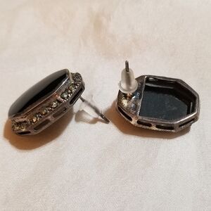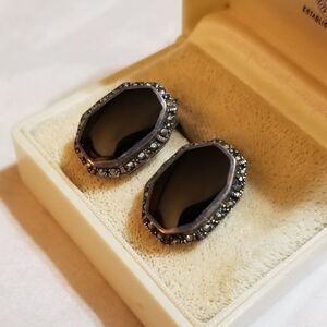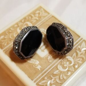 VINTAGE Onyx Marcasite Sterling IBB Earrings