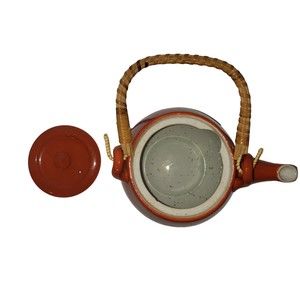 Japanese Orange Teapot with Bamboo Handle