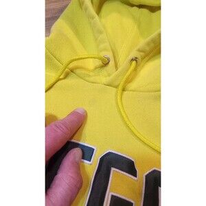 A fair condition Nike hoodie with fleece lining and the big block spell out on the front. Has the center swoosh and long sleeves with drawstrings.