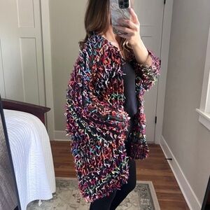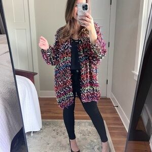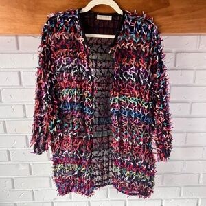 Turn heads while you channel your inner Carrie Bradshaw, your Emily in Paris, or just be the fashionable chic person you already are in this amazing and rare jacket! It's lightweight and flowy; it's bold and colorful. It's perfect for an event, the holidays, or just an average day of the week when you want to feel extraordinary.  You will turn heads in this showstopper!