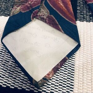 Vintage Oscar de la Renta Vintage Tie. Navy blue with a leaf print. Hand sewn and bar-tacked. In excellent vintage condition. All questions welcomed
