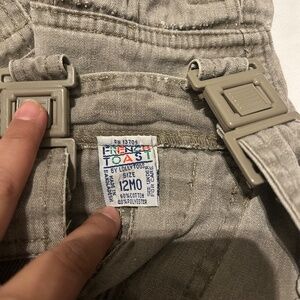 Distressed green/brown 12 month overalls