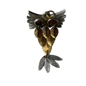 Vintage silver and gold tone Owl Charm. Body is gold tone feathers and bottom is silver tone feathers.