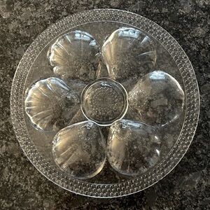 VINTAGE Oyster plate Clear Glass Round Serveware Platter with Textured design