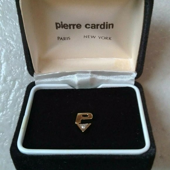 VINTAGE MENS PIERRE CARDIN DIAMOND GOLD PLATED "P" TIE TACK