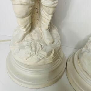 VINTAGE PAIR LARGE TABLE LAMPS CHALKWARE FIGURE WOMAN AND MAN