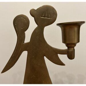 VINTAGE PAIR Solid BRASS ANGEL Taper CANDLE HOLDERS CANDLESTICKS HEAVY 7.5”