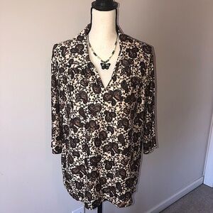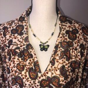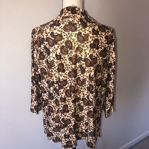 Vintage 70's home sewn polyester knit top. Has wide collar.S/M size. Measures 17" armpit to armpit, 26" shoulder to hem and the sleeves are 16". In very good condition.