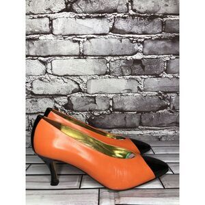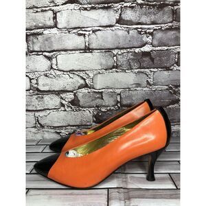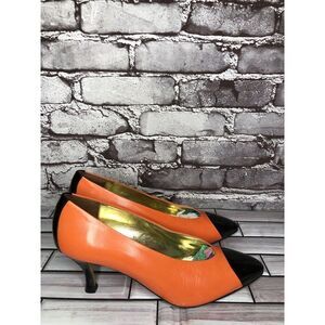 VINTAGE PALOMA Orange Leather Black Cap Toe Dress Heels Women Sz 8.5B US/39EU