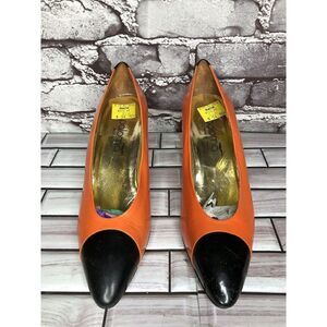 Selling VINTAGE PALOMA Orange Leather Black Cap Toe Dress Heels Women Sz 8.5B US/39EU