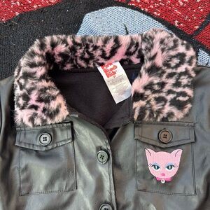 VINTAGE PARK BENCH KIDS BLACK LEOPARD FUR KITTY PATCH JACKET SIZE 3T