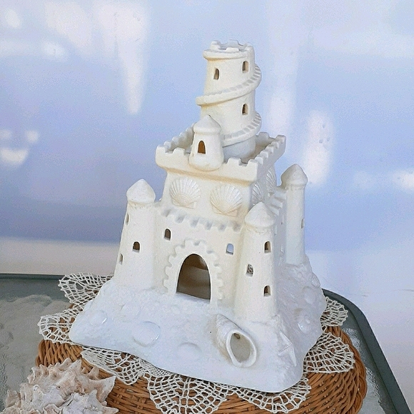 ๐*VINTAGE* PARTYLITE SANDCASTLE TEALIGHT HOUSE ~RETIRED ~SEASHELLS OCEAN BEACH