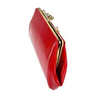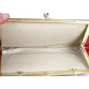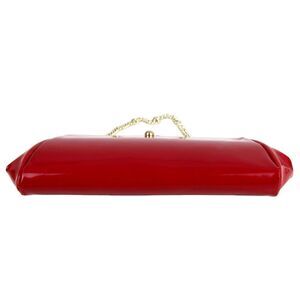 VINTAGE PATENT RED VINYL FRAME KISS LOCK CHAIN SATCHEL HANDBAG CLUTCH