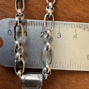 THE CROSS MEASURE A GRAND TOTAL OF 2 3/4 " WITHOUT THE BALE . WITH BALE MEASUREMENTS ARE 3 1/4 ". TOTAL CHAIN LENGTH IS 19 3/4 " MAKING LENGHT TOTAL 24 3/4 '" . ALL STONES ARE GENUINE, GREEN AND BLUE TURQUOISE STONES, LAPIS, CORAL, MOTHER OF PEARL AND ABOLONE. ALL METAL MATERIAL IS STERLING SILVER 925. CHAIN IS A HARDY HEAVY 7MM LOOPS WT S HOOK CLOSURE, AND STYLE OF CHAIN SORRY I HAVE FORGOTTEN AND IF YOU COULD REFRESH MY MEMORY THAT WOULD BE AWESOME. MAKERS MARK ON THE BACK ON BACK OF CROSS IS C.IULE. THERE IS SLIGHT WEAR ON THE BALE SHOWS BEST IN THE PIC WT RULER.