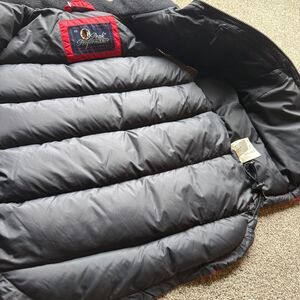 This Peak Performance puffy vest is in good pre-owned condition. It has a couple of smaller stains and some overall wear as shown in pictures.