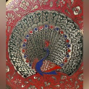VINTAGE PENCO INDUSTRIES BRASS ETCHED PLATE PLATTER DECOR MADE IN INDIA