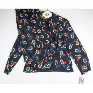 Vintage women's black mirror/rose print blouse and skirt set