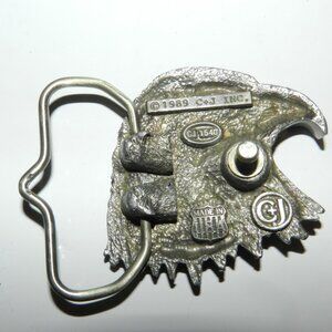 VINTAGE PEWTER~METAL BALD EAGLE HEAD BELT BUCKLE 1989 C & J USA