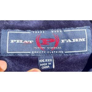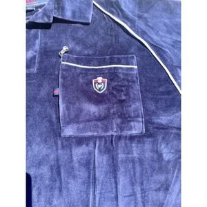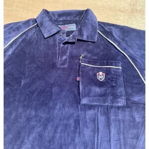 VINTAGE PHAT FARM Velour Polo Shirt Short Sleeve Collared Men Navy Blue SIZE 2XL