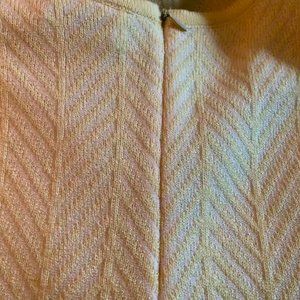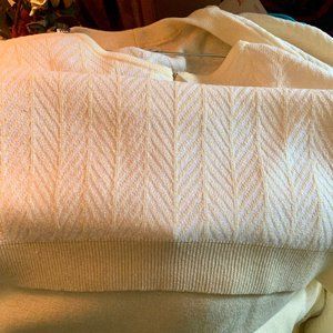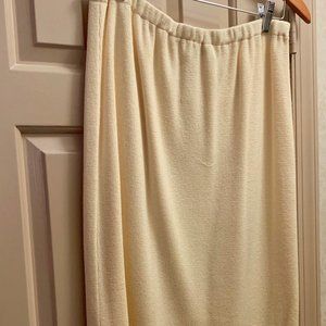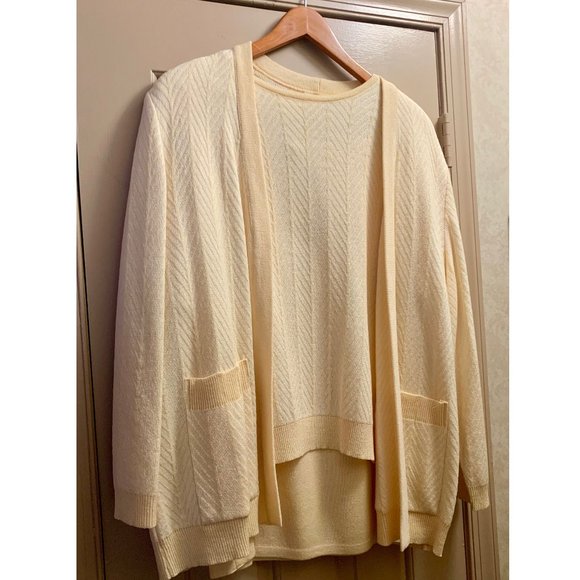 Includes jacket, knit short-sleeve top, and skirt. Chevron texture, soft acrylic knit, Petite Large.