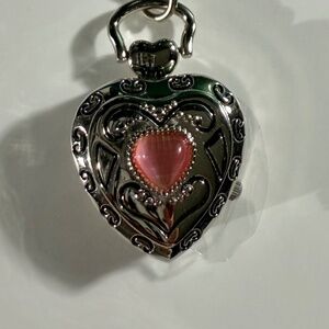 Vintage stainless steel pink heart detailed key chain watch