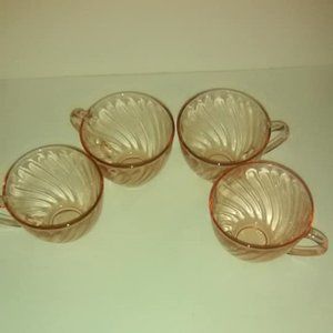 LOVELY SET OF 4 VINTAGE PINK DEPRESSION GLASS CUPS AND SAUCERS. MADE IN FRANCE. THESE HAVE A SWIRL PATTERN AND ARE GREAT COLLECTIBLES. Vintage Arcoroc Made in France ~Vintage Lovely Pink Depression ~ Elegant Italian Glass